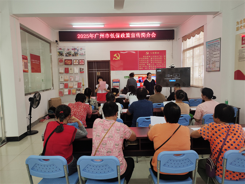 东沙街“双百工程”社工服务站社工于2025年10月20日下午,在沙洛居委2楼开展2025年广州最低保障政策宣讲会。